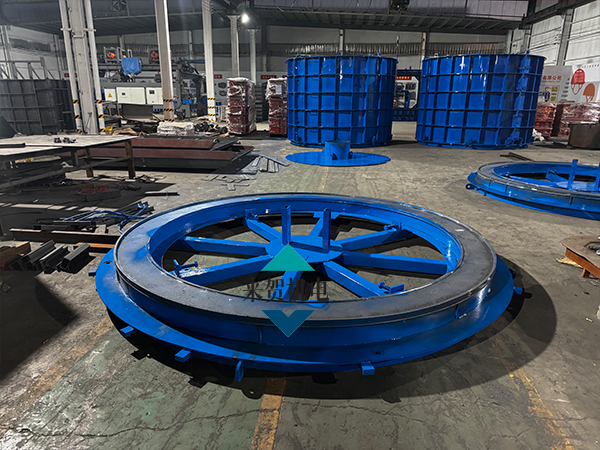 (1)圆形装配式顶管工作井模具沿井壁竖向由若干个圆环组成,每个圆环之间通过一定数量的螺栓连接成整体;