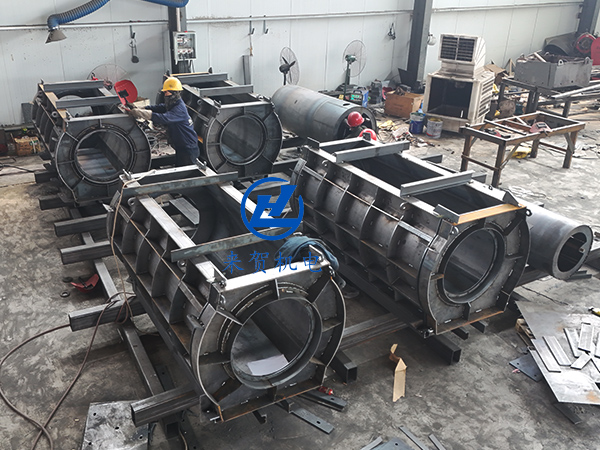 2、圆管涵模具、圆涵挡土墙模具构件的管身与台身的制作